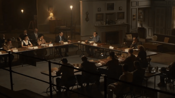 INT: Aaron Sorkin has said that he didn't want any gimmicks in this film, and that it was important for him to feel like the film was made today instead of in 1952. You have also said that The Social Network was a reference point that Aaron Sorkin used in your first conversations about Being the Ricardos, such as how you would utilize different compositions and shifts in character staging, instead of the usual walk-and-talk shots. Can you talk about those early conversations and how you both developed the look of the film?