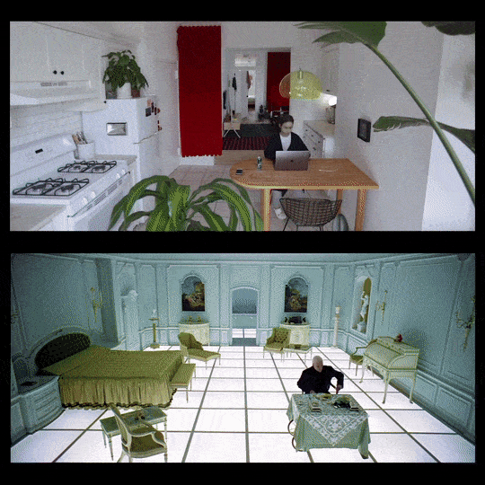 LC: The movie had been on my mind as an aesthetic reference for a separate project. I’d been working from home for a little while when I thought of it. Spending day in and day out in a single space–the similarity just clicked and as soon as I saw it, it really unfolded. I saw the obvious similarities in space and context, but also the emotional parallels. Each phase of Dave’s journey is marked by a different emotion and reaction to the space he is confined to. I think right now we can all relate to the transition from confusion, to acceptance, and then even to release.